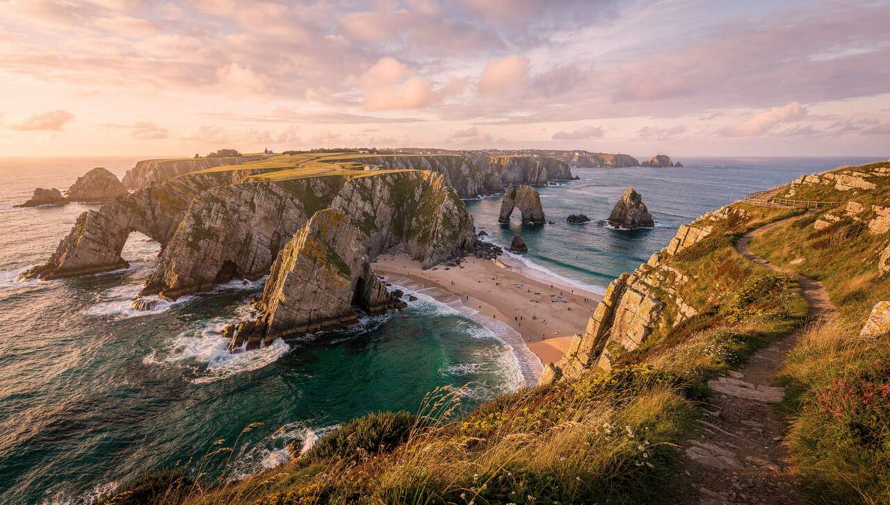 Située en Bretagne, l’île Callot est un véritable écrin de nature que l’on rejoint seulement à marée basse, offrant des paysages sauvages et des plages paisibles. C’est un lieu unique pour les amoureux de la nature et des promenades en bord de mer.
